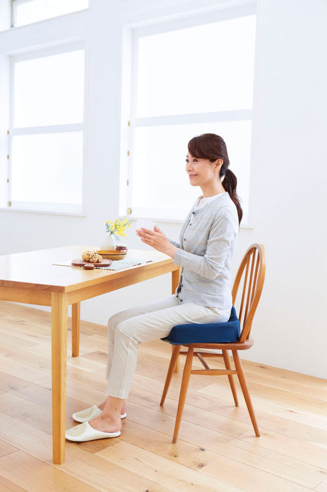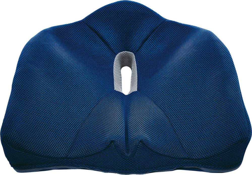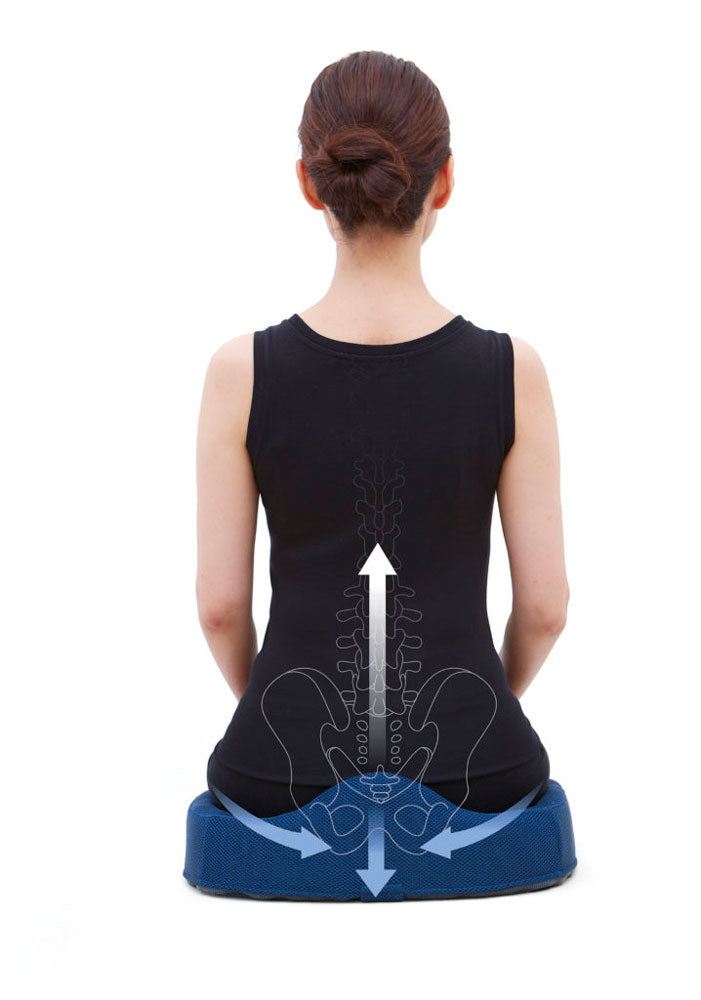 お尻の形に合わせたWカーブと、中央の穴あき構造が、体圧を分散し、腰を優しく支えます。さらに、仙骨を支えることで、背筋が自然と伸び、美しい姿勢をキープできます。